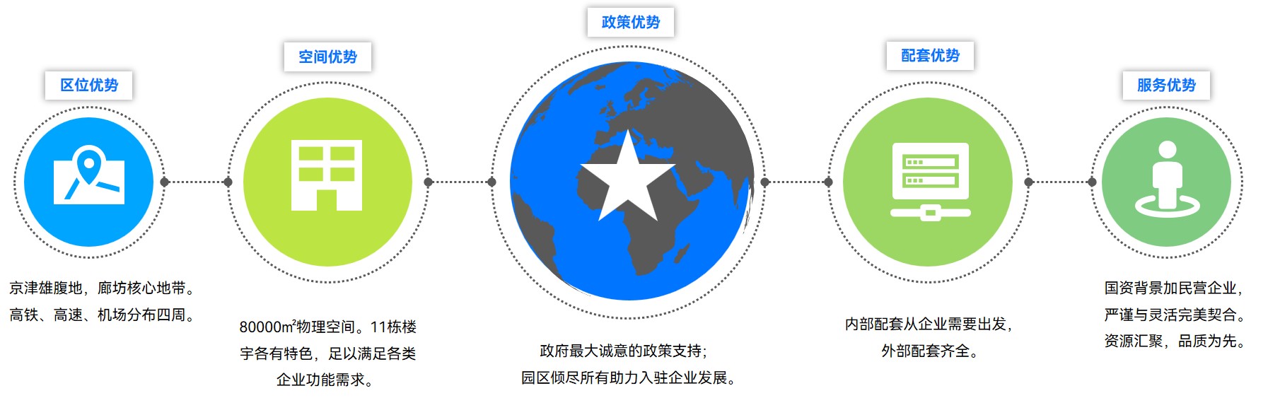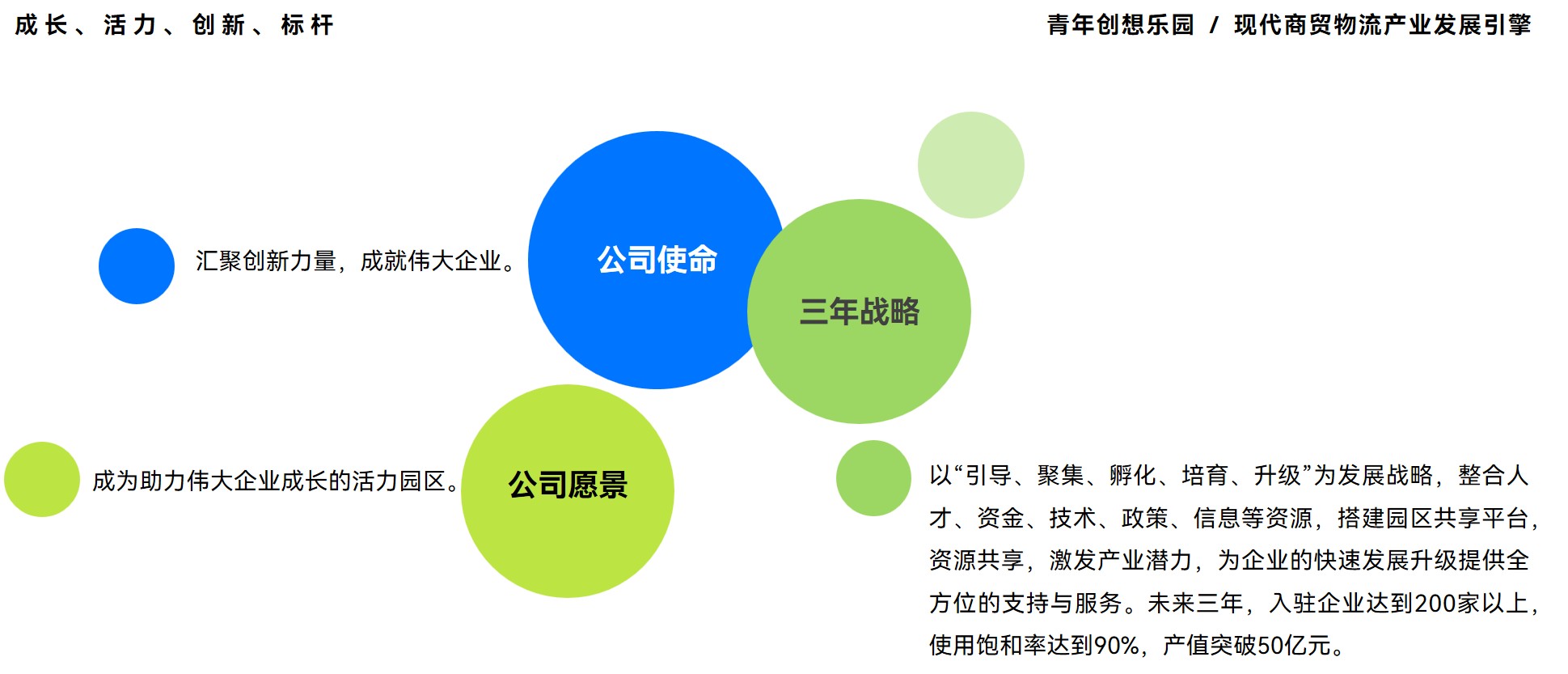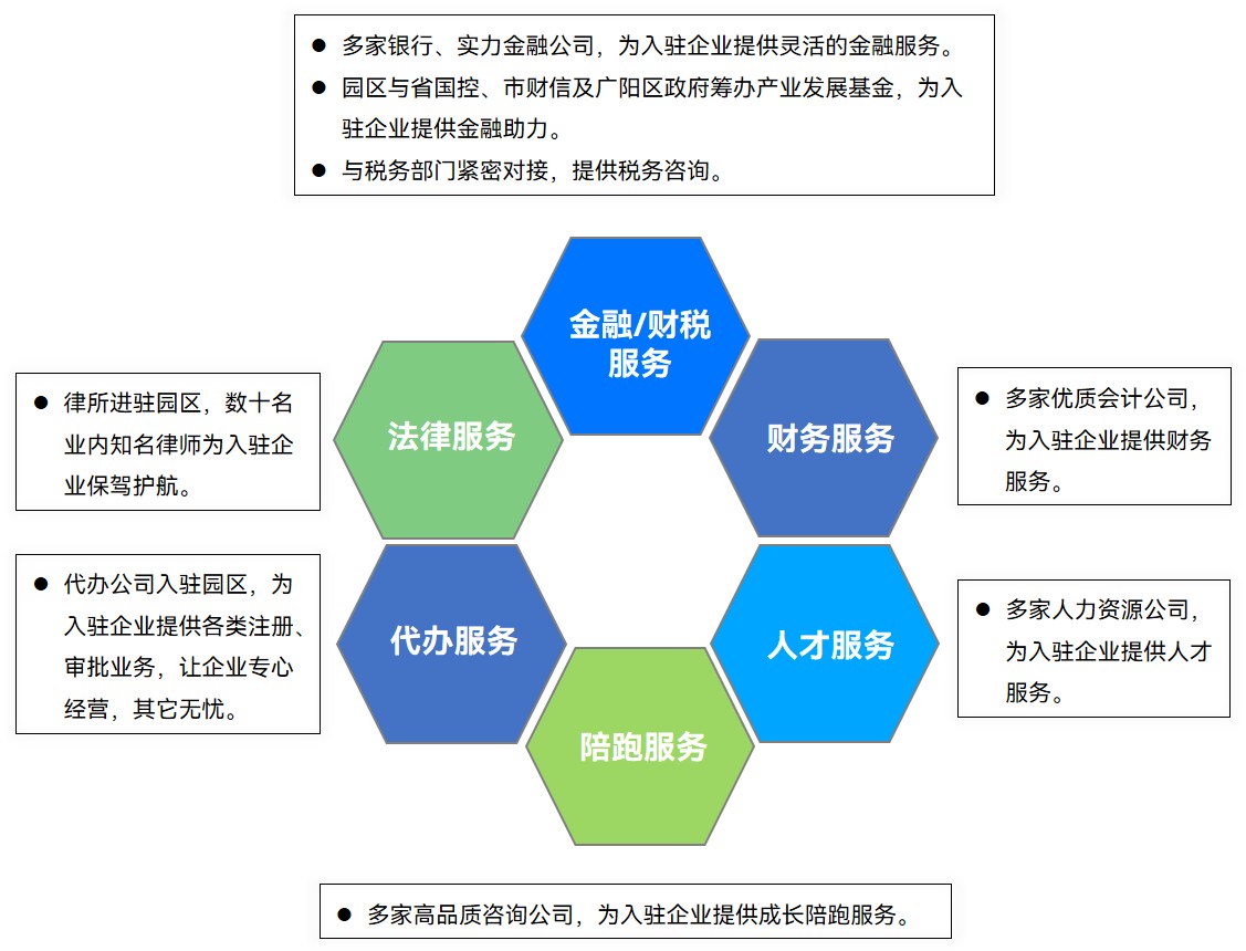 以“引导、聚集、孵化、培育、升级”为发展战略,整合人才、资金、技术、政策、信息等资源,搭建园区共享平台,资源共享,激发产业潜力,为企业的快速发展升级提供全方位的支持与服务。